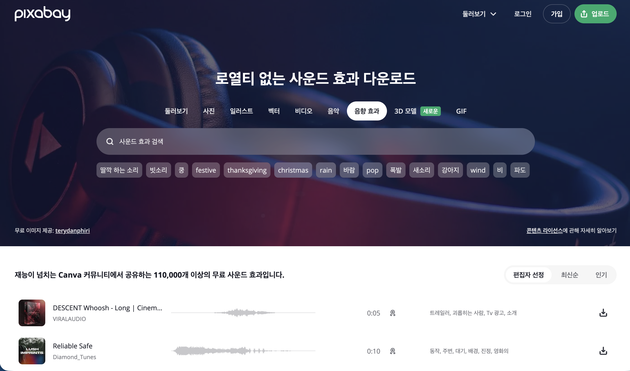 https://pixabay.com/ko/sound-effects/